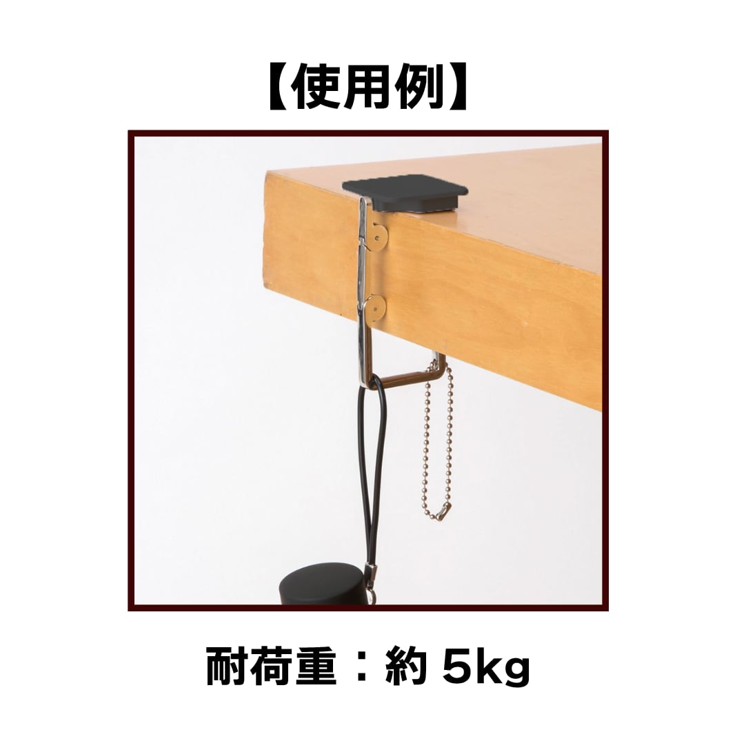 持ち運ぶ際にはキーホルダーとして、使用の際には裏面フックを取り出してお使いいただけるスタイリッシュなバッグハンガー。